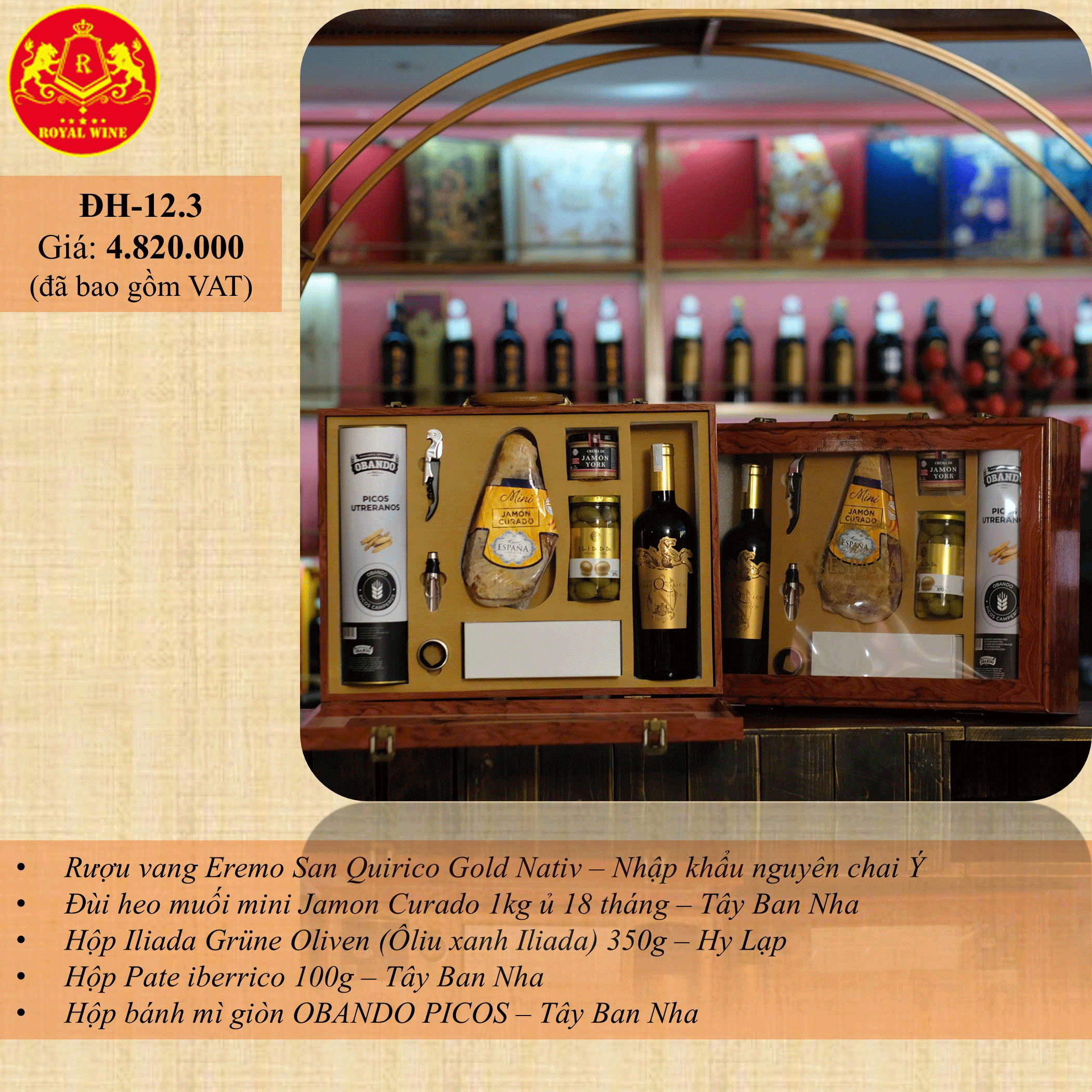 Hộp quà là sự hòa quyện của rượu vang Ý, thịt nguội Tây Ban Nha và các món ăn kèm truyền thống Địa Trung Hải, tạo nên một tổng thể hài hòa cả về hương vị lẫn hình thức. Cùng Vangchat tìm hiểu ngay sau đây về các thành phần bên trong hộp quà ĐH12.3