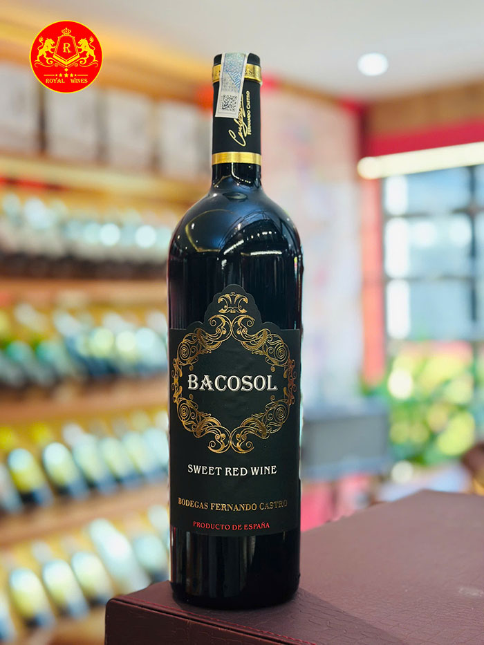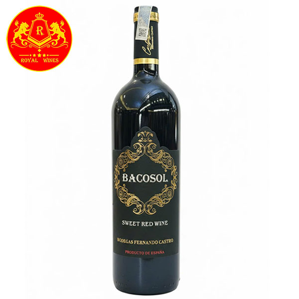 Bacosol Sweet Red Wine là một chai rượu vang đỏ ngọt được sản xuất bởi Bodegas Fernando Castro có lịch sử lâu đời tại Santa Cruz de Mudela thuộc Tây Ban Nha. Bacosol có nồng độ vừa phải chỉ với 9%vol, hương thơm tươi mới của hoa quả chín tạo nên một chai vang ngọt phù hợp với tất cả những khách hàng yêu thích sự ngọt ngào.
