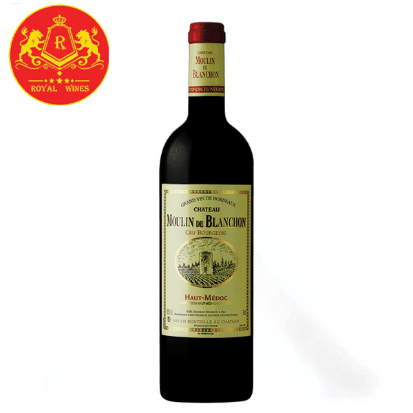 Rượu vang Château Moulin de Blanchon là vang đỏ tiêu biểu của vùng Haut-Médoc, Bordeaux (Pháp), được sản xuất bởi điền trang gia đình cùng tên. Với truyền thống làm rượu từ năm 1978 và thương hiệu ra đời năm 1992, chai vang Cru Bourgeois này nổi bật bởi sự cân bằng hài hòa giữa giá trị truyền thống và chất lượng đặc trưng của Bordeaux.